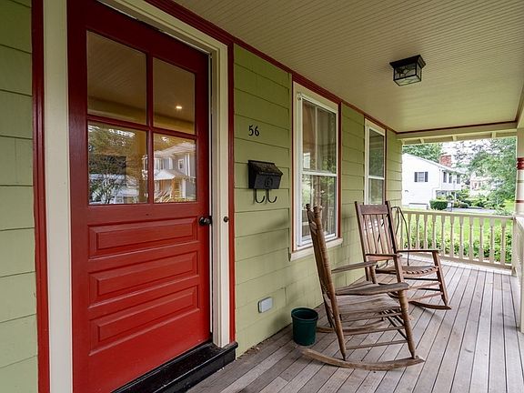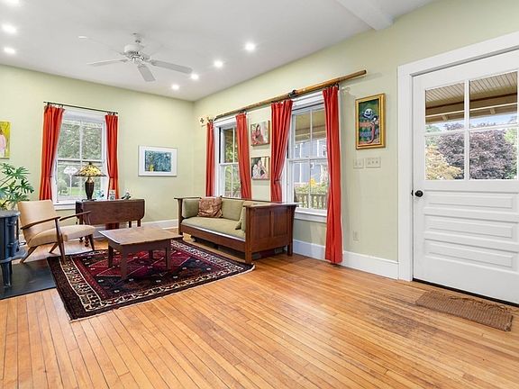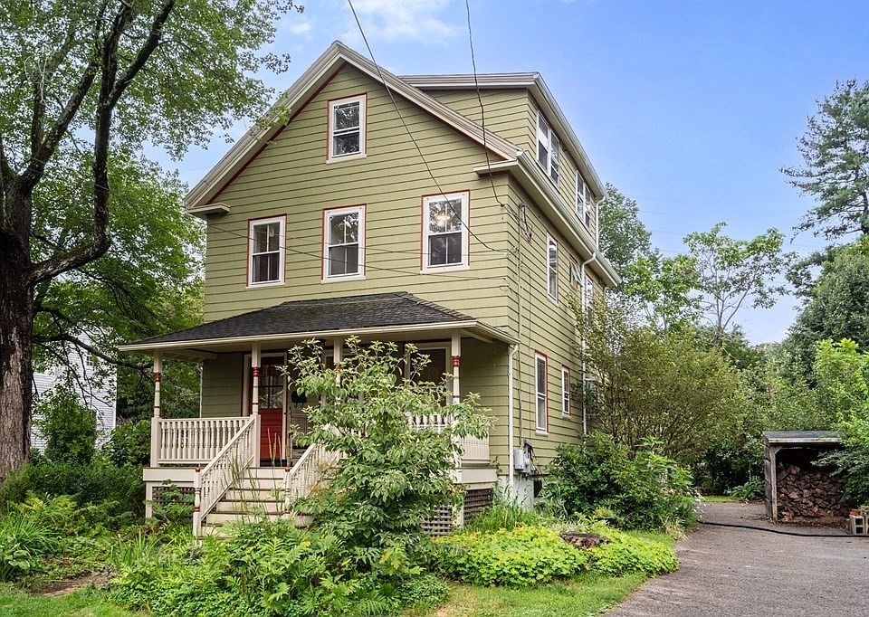 This is a terrific, historical home with a fabulous garden, solar and heat pump energy savings, and in a great location. Walk to town, schools, and trains. Near to highways and public transportation. Solar panels and the heat pump makes this house very energy efficient. EV hook up comes with the house Built in 1869, this house was moved from downtown to its current neighborhood location. Climb the steps to the front porch, then through the red door to a large living room that features high ceilings, a wall lined with bookshelves and a wood stove. The updated kitchen has soapstone counters, new stainless appliances and open floor plan with the dining room and sun room. Hardwood floors throughout. Soaring ceilings on the first floor, generously sized bedrooms upstairs with newly refurbished bath rooms. A large walk-in closet/office is off the main bedroom. The back opens onto a wood deck with a grape trellis over looking the natural, flowing gardens which are full of fruit bearing plant.