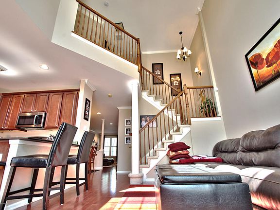 Everything you've been waiting for in renowned Meadow Creek offered at an unbeatable price! This gorgeous sun bathed 3 bed, 2.5 bath ''Purdue'' model with full finished daylight basement is located on one of the most sought after premium privacy lines in the community. Gleaming hardwood flooring on 1st floor, recessed lighting in every room, custom closets in every bedroom, kitchen with granite counters, 42'' cabinetry stainless appliances, 2 story family room with 3 sided fireplace, master bed with cathedral ceilings, his & her walk in closets, en suite bath with granite counter, whirlpool tub, double sinks and shower. The full finished basement offers plenty of extra living space plus a home theater. All AV equipment & retractable screen included!