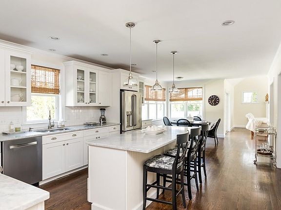 - Kit Dscrp: Window(s) - Picture, Main Level, Flooring - Wood, Dining Area, Flooring - Hardwood, Countertops - Stone/Granite/Solid, Cabinets - Upgraded, Closet/Cabinets - Custom Built, Kitchen Island, Stainless Steel Appliances, Open Floor Plan, Recessed Lighting, Countertops - Upgraded, Gas Stove, Lighting - Pendant, Beadboard