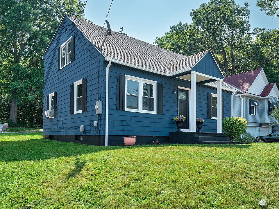 Fantastic, fully dormered 4-bedroom, 2-bath Cape that's been completely remodeled! Step into a bright, sunny living room that welcomes you right in. The beautifully updated kitchen features quartz counters, stainless steel appliances, and new shaker-style cabinets, opening directly to the dining room for easy entertaining. Just off the kitchen, you'll love the sunroom-a perfect spot for your morning coffee! The first floor also includes a bedroom and full bath, with hardwood floors throughout (except the kitchen). Upstairs, the primary bedroom boasts a fully remodeled bath, along with two additional generously sized bedrooms and plenty of closet space. The partially finished lower level adds even more living space. A detached garage, patio, and flat backyard complete this wonderful property. Truly a must-see!