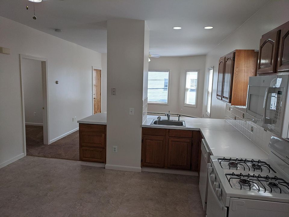 THIS IS A MUST SEE!! You will love coming home to this beautiful contemporary that has been completely renovated. This apartment is the entire 2nd Floor of a 3 family house. The kitchen is sunny and bright with multiple wood cupboards, tile back splash, dishwasher, microwave oven over the 4 burner gas stove, 18 cubic ft. frost free refrigerator freezer, ceiling fans and mini blinds with curtain rods on all the windows. The bath is all tiled with pedestal sink and large storage closet. Entire apartment has all new wall to wall carpeting. All 3 bedrooms have ceiling fans and windows with mini blinds and curtain rods. Each bedroom has a lighted closet. The living room has a contemporary open plan to the kitchen and has a bay window with mini blinds and curtain rods. Apartment is "Certified Lead Safe". Basement has storage with washer and dryer hook ups. Apartment has parking for one car in the garage and two additional assigned spaces in the parking lot. Locked mail boxes. Door bell for your apartment. Exterior and interior of the house has dusk to dawn lighting. Pets are welcome. Grocery store, coffee shop, gas station, park/playground and restaurants within blocks from the house. Easy access to Route 95, train station and bus line. Call for additional information and/or schedule a viewing at Owner pays for water and sewer. Tenant pays for gas and electricity. Small pets welcome.