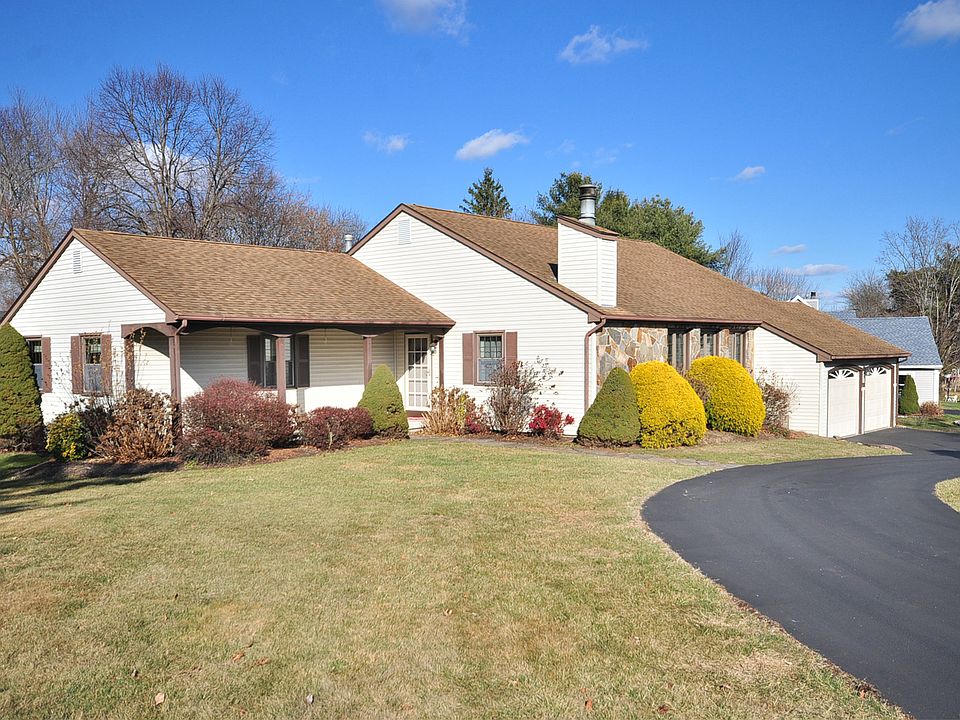 A rare find! Nestled on a beautifully landscaped and welcoming .63-acre lot, this custom built, two bedroom, two and one-half bath contemporary Ranch home offers style, functionality and the desirability of one level living. From the moment you arrive, the property's outstanding curb appeal, professional landscaping and circular driveway create a lasting first impression. A chef's delight, the kitchen boasts oak cabinetry, newer flooring and a tile backsplash. Ideal for relaxation or entertaining, the expansive living room is highlighted by a wood-burning fireplace. The dining room features beautiful hardwood flooring, crown molding and a French door leading to a three-season enclosed porch, providing a welcome space to enjoy nature while protected from the elements. The private retreat of the Primary bedroom features a generously sized walk-in closet and the convenience of a designated full bath. An additional bedroom, a second full bath and a half bath round out the main living level. Situated on a meticulously manicured lot, the backyard offers substantial space for outdoor activities and recreation. Whether you're hosting friends for an outdoor barbecue or enjoying the serene surroundings, this ranch home provides the perfect blend of comfort, charm and modern living. There is great value in the thermal pane windows, central air, 200 amp electrical and the whole-house fan. Come on...Let's take a look inside
