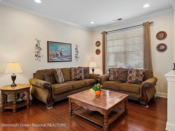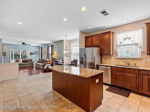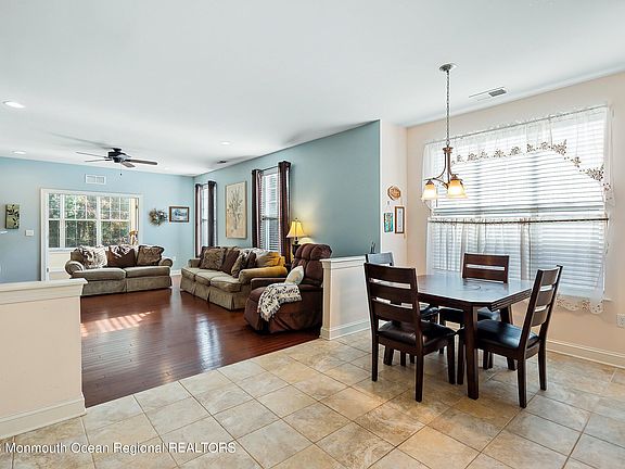 Imagine enjoying your golden years in a bright, spacious home that exemplifies who you are and celebrates your success. Then look no further than this gorgeous, expanded Burnham model at the Four Seasons at South Knolls Active Adult Community in Jackson, NJ. This three-bedroom, 2 full-bath, ranch-style beauty dazzles with stylish wood & ceramic flooring and elegant crown moldings. The oversized Kitchen with its large center island could be your culinary paradise, especially as you take in the ambiance created by your stainless steel appliances, cherry cabinets, granite counters, and tile backsplash. Or maybe you'll enjoy the warm glow of a fireplace while relaxing in your Family Room. Then again, who wouldn't mind soaking in the radiant beauty of the 4-season Sunroom? Your Bedroom Suite features an expansive Bath with an oversized shower. Need convenient storage space? Then, you'll be delighted to discover that your 2-car garage has a walk-up staircase to an incredible storage space. Last but not least, explore and enjoy the many benefits of this vibrant community, such as social and professional clubs, the Clubhouse with Fitness Center, indoor and outdoor pools, Bocce and tennis courts, shuffleboards, and more. So now it's your time to shine by making this special place your home.
