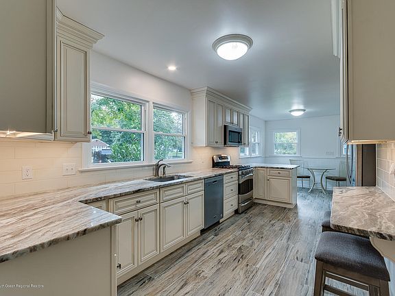 NORTHERN TINTON FALLS! Pride of ownership is evident in this renovated and meticulous home! Features include: 6 bedrooms, 4 full baths, fantastic walk out lower level with wood burning fireplace, refinished hardwood flooring, recessed lighting, abundant closet space and new Timberline roof! This home boasts brand-new eat in kitchen with custom cabinetry, granite countertops, stainless appliances, and porcelain tile flooring. An abundance of windows allows the sun to shine into this bright spacious home. Lovely three season sunroom offers access to 2 level paver patio overlooking the spacious level backyard. Master bedroom features walk in closet and renovated master bathroom. In-Law suite possibilities! Conveniently located to all transportation, beaches and shopping NOT to be missed!
