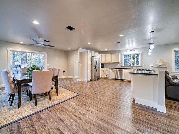EVERYTHING OLD IS NOW BRAND NEW! Located on Korominu Trail this COMPLETELY REMODELED Mfg. home backs up to lots of Greenbelt and Forest at the rear. This is NOT to be Missed: 2 Bed/2 Bath home has been completely gutted to the studs and practically rebuilt--now absolutely stunning! Walls were removed to create a completely open living/kitchen area. Paneling was taken down in the whole house, all electrical was replaced and new insulation/drywall installed where needed. Ceiling was reinforced and drywalled, new can lighting and light fixtures, new interior doors throughout, all new cabinets and appliances in kitchen with black granite counters. New Winpro Low E insulated windows and new Rinai Energy Saver gas direct wall furnace installed. New carpet in bedrooms and luxury vinyl flooring (looks like real wood!)throughout rest of house. All new bathroom vanities with beautiful vessel sinks and showers in each. Master bedroom has freestanding bathtub. Outside completely repainted, woodshed enclosed for added storage. Paved circular driveway. New trees/plants planted in front yard with drip system. BONUS: septic/leach field system completely redone in late 2019. Priced to sell, this one won't last long! Home on permanent foundation (433A on file with Plumas County).