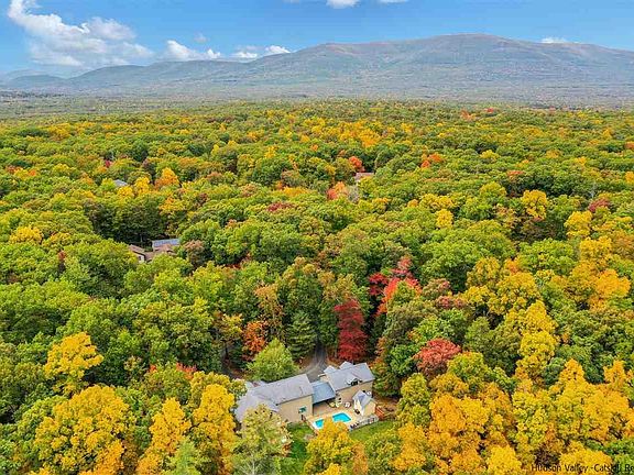 Beautiful Woodstock modern set on level 4 plus parklike acres with heated inground pool. This beautiful architecturally-designed home provides enjoyment of nature at its best through stunning walls made of large glass windows. Desirable open floor-plan with cook's-delight kitchen, features professional grade stainless steel appliances, custom cabinetry, expansive granite counter tops and breakfast bar. Spacious kitchen flows directly into the great room which features soaring beamed ceilings, Heart Pine Ocala Flooring, gas fireplace and den area. Expanded decking overlooks private level yard and heated inground pool with pool house. Loft area is a perfect work from home office suite. Master bedroom suite with spa like bathroom. Guest wing with spacious light filled bedrooms. Newly finished walkout lower level with media room, recessed lighting kitchenette and bathroom. Covered 20x22 patio leads to garage and unfinished bonus space for future living space. Architectural plans available. Security system. The ideal country setting to escape. Take advantage of membership at nearby Zena Rec center offering tennis, swimming and more. Whole house generator is an added bonus. The wonderful Hudson Valley offers vineyards, parks, Catskill trails/Rail Trail, antique shops, cozy cafes and culinary-grade restaurants. 5miles to Woodstock Proper and 2hrs to NYC. Must have appointment to view.
