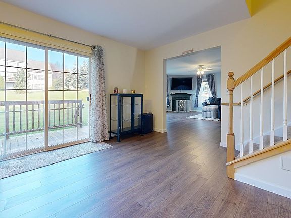 Welcome home to your bright sunny end unit townhome in the heart of Essex Center. This home features an open layout, perfect for modern buyers with space to entertain and ideal for a low maintenance lifestyle.  Surrounded by nature and in a convenient location.   The entry opens up to an expansive kitchen with ample cabinetry, gas stove and modern appliances, expertly laid out featuring a walk in pantry. You will love this room for entertaining complete with a breakfast bar, and island overlooking the dining-area and outdoor alfresco deck, which is perfect for a morning cup of coffee. The spacious living room features a gas fireplace and walls of windows – an amazing place to relax. The first floor living area features laminate floors, great closet space and half bath, as well as access to the full unfinished basement. Upstairs boasts a primary with a walk-in closet and updated ensuite executive bath, and two large guest bedrooms and additional bathroom. The second floor laundry room includes a sink and new washer with a dryer.  This property features an attached two car garage.  The location cannot be beat with easy access to the city center, within miles of downtown Burlington, or a quick drive to the mountains. Enjoy everything Essex has to offer with wonderful recreation, amazing shops and restaurants. The best of the best that the city has to offer. Showings begin on December 2nd, 2023.