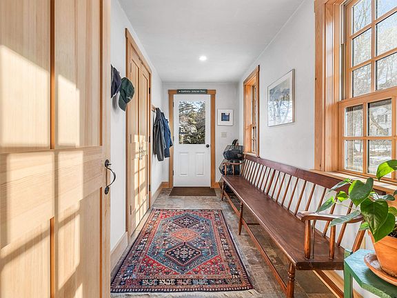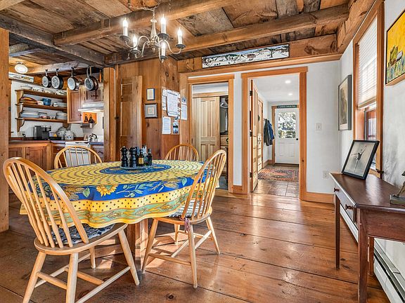 Delightful 3 bedroom 2+ bath home located in a prime and most convenient location. Warm and inviting post and beamed living and dining areas and compact and efficient kitchen. Newer, spacious first floor primary bedroom and modern, radiant heated tiled bath. Two roomy bedrooms and a quarter bath complete the second floor. Full dry basement offers excellent storage space. Low utility costs due to heat pumps and solar panels. Beautifully landscaped gardens, garden/utility shed complete this special property plus a walk to everything location.