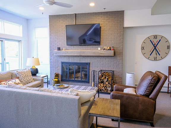 Ledgewood on Okemo, This beautifully renovated three-bedroom, two-bath home welcomes you with a thoughtfully designed mudroom featuring custom cubbies. The entire unit includes high-end finishes, particularly in the kitchen with slate floors, stainless appliances, and vaulted ceilings. A locally crafted barn door conceals the pantry and laundry room, adding a touch of artisanal charm. The living room is the perfect place for relaxation with an abundance of natural light, and a large brick fireplace. The on-suite offers top-floor privacy and a custom-tiled bath. The main level offers a bedroom and a bunk room, creating space for all. This is a great place to watch the groomers on the slopes or the sunset. Just a short walk to the slopes for easy access to the Ledgewood Trail. Visit the Okemo real estate community today! Taxes are based on current town assessments.