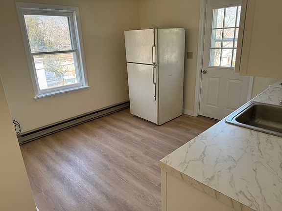 Quiet neighborhood in Central Belltown area. Brand new kitchen cabinets, flooring and bath. This apartment is on 2nd and 3rd floors on left side of 3 family duplex. LR, MIEK and full bath on 2nd floor. BR and storage on 3rd floor. Stairway to 3rd floor is very tight and will not allow a rigid mattress or boxspring larger than full size. Shared use of fenced-in back yard. One off-street parking spot. Electric heat and hot water. Separate electric meters paid for by each tenant. No smokers.