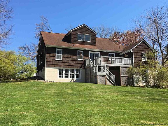 Welcome to 56 Linwood Ct., conveniently located between New Paltz and Kingston in the sweet hamlet of Bloomington. As you step inside the front door, your eye will be immediately drawn to the brick fireplace flanked by two side windows. You'll want to sit down on the couch to look out over the front yard through floor to ceiling windows with custom pleated shades. But, don't get too comfy - there's a lot more to see. Continue to the open eat-in kitchen enjoying newer stainless steel appliances, retro countertops, and a French door which opens to a deck overlooking the back yard - a great place for relaxing morning coffee, lunch or dinner. Two bedrooms and a full bath complete the first floor. Step upstairs where you'll be delighted to find the full second floor dedicated to the master bedroom and master bath with jetted tub. The open and spacious layout allows for sweet sitting areas, and the walk-in closet and tucked away storage areas are wonderful bonuses. Head back to the kitchen and down to the lower level to find a surprising Family Room, Laundry Room, half bath, and ground-level exterior door to the back yard. The other portion of the basement houses the utilities and tons of storage space and a work bench. Additional amenities include built-in drawers, a ceiling fan, and recessed lighting in master bedroom; a cedar entrance closet, flagstone front walkway, Burnham furnace(3+- yrs), and top-of-the-line Bosch washer and dryer (1 yr+-). Minutes from Kingston's Historic Uptown and Rondout districts, SUNY New Paltz, Mohonk, and the Rail Trail; and, just two blocks from the bus route going to and from NYC, New Paltz, Rosendale and Kingston, each day. NOTE: Add'l 499 sq. ft. on lower level not included in sq. ftg. noted above.