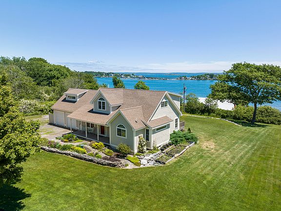 OPEN HOUSE Saturday 29th, 10-12:00 Sunday 30th, 1-3:00 Simply perfection! Views you dream about and the house to match. Located At the end of a quiet, private road, the property opens up to stunning long views across Harpswell Sound to Orr's, Bailey Island and the Cribstone Bridge. Beautiful artistic landscaping and timely perennials draw you in, and welcome you to this easy single level living home. The living space, open from one end of the house to the other, offers kitchen, dining, living and sitting area with spectacular water views, filtertering across the entire home. From the expansive deck, watch an endless array of sunrises, the unmatched color takes your breath away every time! A spacious primary suite with a walk-in closet and 1st floor laundry. Not too big and not too small, this perfect size house offers a 2nd floor with 2 bedrooms, full bath, a quiet sitting area and a deck, showing off views of just how gorgeous Harpswell can be! So suited to year round or seasonal living with an attached 2 car garage, unfinished space above, a mudroom, a full basement with finished living area and so much storage. Just minutes to beaches, trails, a marina, and restaurants. Life is good!
