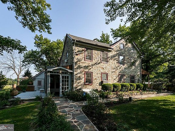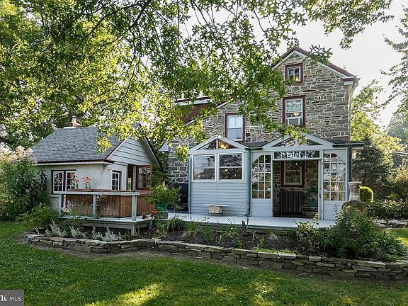 One of a kind rare find! Circa 1800's Colonial home has beautiful craftsmanship. 3 STALL HORSE BARN plus 4 BAY GARAGE! This farmette has a lot to offer. Stunning historical stone farmhouse has been lovingly maintained. Walk up the lovely flower-lined walkway to a quaint sun room with slate floor, pretty paned doors, and windows. Doors and panels are removable to make an open-air porch in the summer. Entry from a mudroom that leads into the kitchen with a center island that makes it easy for food prep and to chat around. Handmade Mexican tile countertop, oak cabinets, a built-in cabinet that adds character and goes through to dining room plus fresh paint. Gracious dining room with random width pumpkin pine floors, exposed stone wall, chandelier and deep window sills with authentic curved plaster corners. Living room is very spacious with stone fireplace with wood insert that will heat the whole house. Recessed lighting to highlight the fireplace. The mantel came from a beam out of the kitchen, makes a great conversation piece! Also built-in shelves, shaker door to add to the old charm. Gorgeous wood staircase. Master bedroom with random width wood floors that flow into the hallway. Center light, closet with shelves and deep window sills throughout. You will love the doors and knobs! 2 additional bedrooms. Handmade armoire to add closet space. Hall bath has built-ins. Huge clean and useable studded and insulated attic for storage, you could partially finish. Basement has bilco doors, water softener, and UV light. Plumbing and wiring were upgraded! Upgraded Thermopane windows. 6 New lithium battery smoke detectors with 10 yr warranty installed. Tranquil exterior, sit on sizable deck and watch the sunset or enjoy the hot tub. The summer kitchen is so adorable with mixed blue stone floor and walk in fireplace, it would make a great playhouse or man cave. Front porch adds character. Looking for a workshop? Garages? Equine or farm facilities? This has it all, 4 bay 44 x 24 Garage, one 10 x 24, the heated shop 24 x 21 and is insulated, drywalled and has electric. 2 doors measure 7 foot high, 1-10 foot high and 1-12 foot high. Huge pole barn set up with 3 horse stalls that are matted with oak kick boards, enclosed 10 x 11 tack room, hay storage plus some upper storage. Hydrant for water. Electric. Dutch door stall access to durable mud free paddock area for easy turnout. Plus fenced in pasture area. Enjoy the farm life with less work and time, all the work is done! Do not miss this treasure. Adjacent farmland in preservation keeping open space vistas to enjoy.