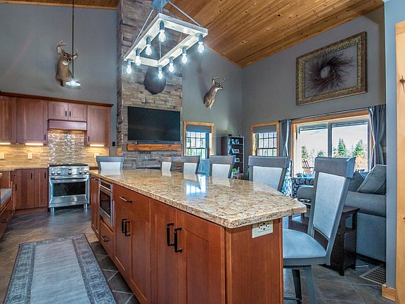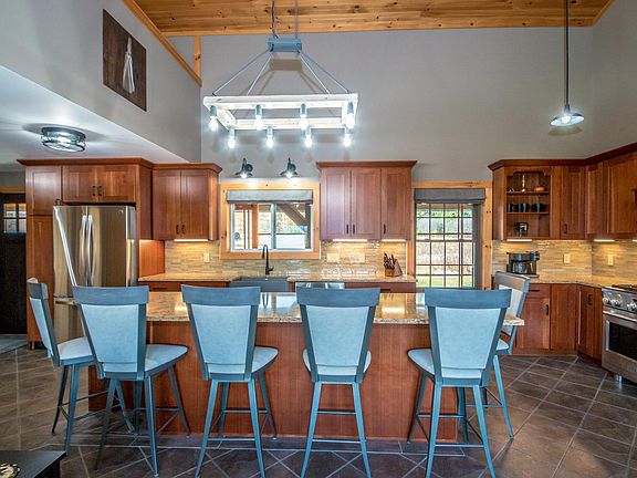 Location, Location, Location! This meticulous log sided home is located on a private, dead-end road with direct snowmobile trail access. Take in the commanding mountain view from the glass door of the Great Room or from the hot tub on the back deck and outdoor living area. The Great Room is open to the recently remodeled custom kitchen which boasts cherry cabinetry, quartz counters, farm style sink, and top of the line stainless-steel appliances. The gorgeous island seats 6. The focal point of the main living area is the propane fireplace framed in floor to ceiling ledgestone. The primary bedroom and a ¾ bathroom with laundry area, also occupy the 1st floor. The 2nd floor loft (bedroom) measures 20’ x 24’ and could easily be divided to make two 2nd floor bedrooms. The 30’ x 60’ detached garage also includes recreational vehicle storage, a workshop, a carport AND a 24’ x 30’ heated guest suite on the 2nd floor. The front screened-in porch offers a great space to relax and enjoy the seasonal deep purple lupines in the front yard. There's an efficient hot air heating system, central air conditioning and a whole house stand-by generator. Sited on over 10 acres, this incredible home and its peaceful location would make an ideal vacation home or full time residence in the North Country!