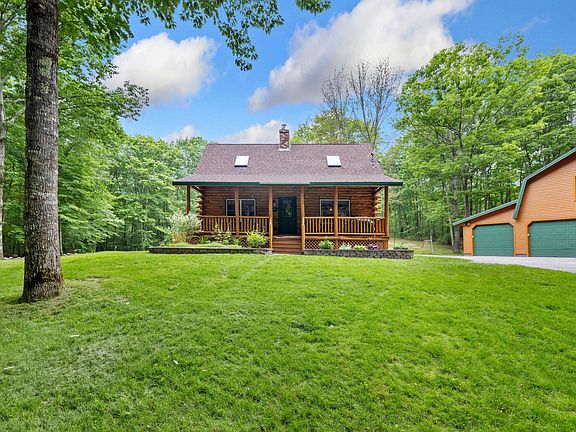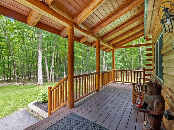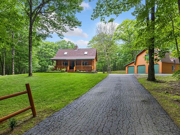 Nestled on 5.3 private acres, this authentic New England log home seamlessly blends classic coziness with modern comforts. Featuring stainless steel appliances, leathered granite kitchen countertops, 4 heat pumps, and a propane fireplace with a stone hearth, it offers a perfect balance of rustic charm and contemporary living. The main level boasts an open concept kitchen/dining and family room with a cathedral ceiling, complemented by a mudroom featuring a built-in bench and cubbies, a full bath, and a primary bedroom with access to a delightful screened porch and expansive deck surrounded by woods. Upstairs, discover a cozy reading nook and two generously sized bedrooms. The newly finished lower level includes another full bathroom, a kitchenette with refrigerator, microwave, and sink, and a spacious living area ideal for guests, movies, or hobbies. The mechanical room houses a 4-year-old Biasi boiler, a woodstove with a new flue, a water treatment system, and ample storage. A 3-bay garage offers heated space, with an attached lean-to for equipment or recreational items, plus a full workshop on the second floor. Enjoy exceptional privacy just 30 minutes from Portland or Portsmouth, and less than a mile from Kennebunk Pond's public beach. This unique property promises everything you desire in a home and more.