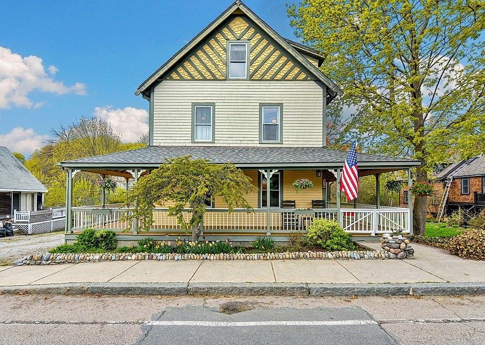 Stunning farmhouse located in the heart of the Historic Hull Village. Approaching the house you'll be greeted by eye catching gables, a wrap-around porch and flowers. On the first floor you'll find a spacious living room, welcoming kitchen and bright dining room with a bonus office/playroom. The second floor boasts a modern full bath and three bright bedrooms, including a wonderful suite with a private antechamber and balcony overlooking the backyard. The third floor features two additional spacious bedrooms and a half bath. Outside, a large driveway offers off-street parking for three cars and an auto-start whole house generator. The fenced yard includes raised garden beds, flowering perennials, and vibrant bulbs for the green thumbs with plenty of space for outdoor entertaining. Easy access to playgrounds, library, schools, beaches, and the Boston commuter boat makes this charming house perfect for commuters looking to capitalize on small town living with easy access to Boston.