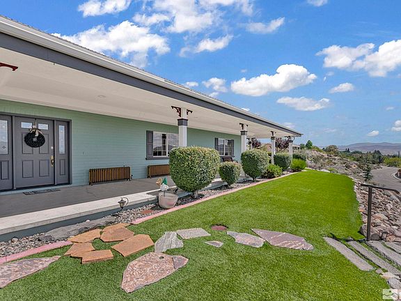 This beautiful custom built home feels like it was built on top of the world!! The home in on one acre with spectacular views out every window! To further capitalize on the views, the home has a large wrap-around covered porch where the sights of Carson City and the Sierras all the way to Jobe's Peak can be seen! This home has been fastidiously maintained and has fantastic upgrades and top of the line finishes. Expert craftsmanship and great attention to detail set this house apart from all others., The expansive kitchen is oversized and located centrally which is perfect for large gatherings. There is plenty of storage space, a SubZero refrigerator & commercial grade Viking stove with 2 ovens. The kitchen leads into the dining room and this open concept great room has many access points outside to the covered patio. The primary suite is large in size with tray ceilings and an ensuite bathroom with an oversized shower stall, dual sinks and a large walk in closet. The sun room is located off the main bedroom with a hot tub and an area for sitting and dining. There are two additional bedrooms with ample storage and a jack and jill style bathroom between with a tub/shower combo. The tandem garage is over 1,000 SF and is fully finished with a workbench and pull down stairs for additional storage. The property is beautifully landscaped with very low maintenance artificial turf, mature bushes and plants, a spectacular terraced hillside behind the home, and full drip all around the property. Come see this delightful home today!