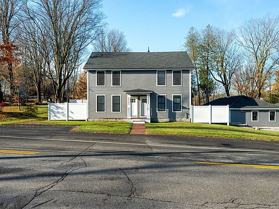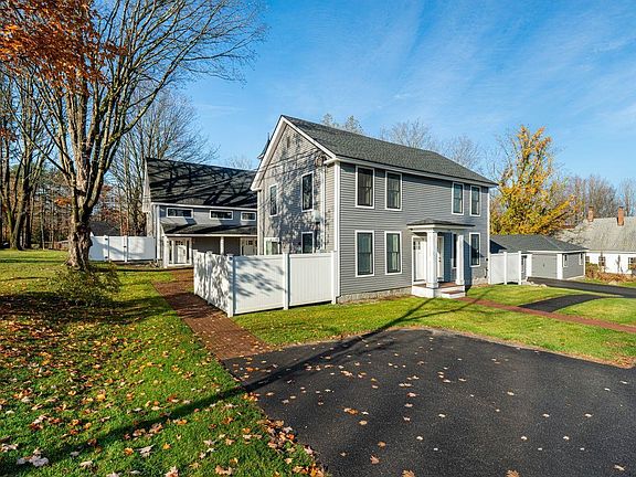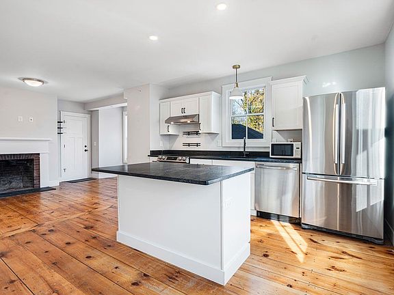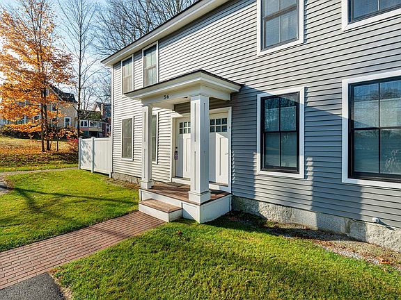 Welcome to 56 Maple St Unit B Hopkinton NH. This one bedroom one and a half bath end unit condo is conveniently located within walking distance of all of your favorite shops and restaurants. On the main level you will find the kitchen/living area, brick fireplace that has a hook up for either a wood or pellet stove, and half bath. The kitchen boast an eat-in island, granite counter tops, and stainless steel appliances. Walking up the carpeted stairs to the second level you will find the primary bedroom, bathroom, and an office/guest room space. Enjoy beautiful hardwood floors throughout as well as mini-split AC/Heat through out. There is 2 car garage space assigned to this unit. Extra shared storage located in basement. Conveniently located under an hour from Concord and Manchester.