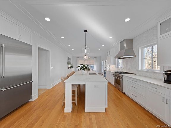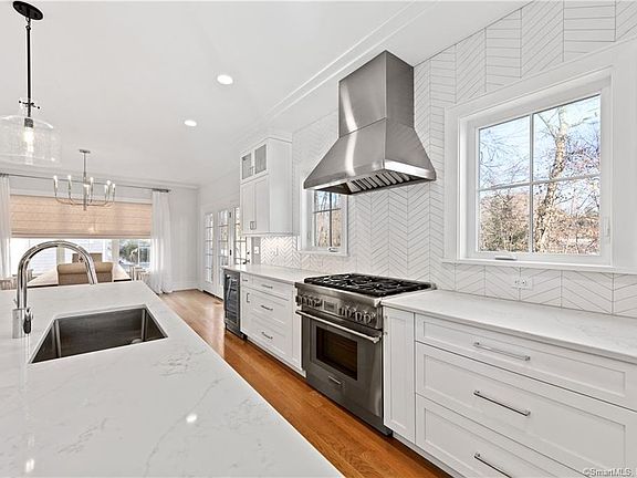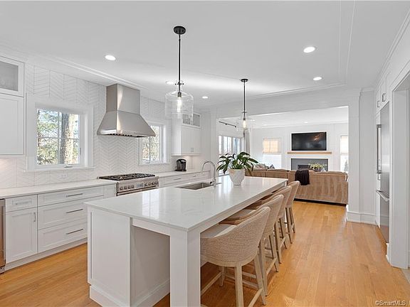Sensational, better than new construction home located on a coveted, central University area cul-de-sac. Incredibly efficient, sun-flooded floorplan with ten foot ceiling throughout first floor and nine foot ceilings on 2nd floor. Show stopping entry foyer with walls of windows, soaring ceilings and gorgeous paneling and moldings. Stunning kitchen with custom white inset cabinetry, expansive nine foot white quartz island and top of the line appliances including wine cooler and drawer microwave, opens to beautiful dining area with French doors to backyard. Family room boasts a gas fireplace surrounded by a floor-to-ceiling sleek, flat paneled trim. Upstairs, a luxurious master suite with vaulted ceilings, huge walk-in closet & sublime master bathroom with huge shower, floating tub and double vanity. Three additional generously sized bedrooms, one en-suite and one Jack-and-Jill bath and large laundry room complete the 2nd floor. Huge walk out lower level with French doors to bluestone patio and full bathroom offers an additional 900 square feet of finished space--perfect for a 5th bedroom, home gym, office, playroom or a combination. Professionally landscaped backyard with partial fencing and two bluestone patios. Attached two car garage, mudroom, smart lighting system, propane heated & cooled, cedar shingle exterior. Steps to Fairfield Prep and Fairfield University and minutes to downtown Fairfield and Metro North train.