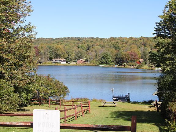 LAKE HOME - PRIVATE MOUNTAIN LAKE-Bright and airy 3 bedroom, 2 bath ranch with lake rights to private mountain lake. Home features living room, dining room, kitchen, full basement and central air. Situated on a manicured 1.38 acre level parcel with storage shed.