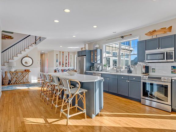 Experience waterfront living at its finest with this exceptional property located at 56 Middle Pond Rd in Southampton. This is a rare opportunity to own a double-lot with a pool and dock, making it a water lover's dream come true. The designer nautical theme throughout the home is simply stunning. The first floor boasts a bayfront great room that seamlessly flows into the kitchen, living room, den, deck, sunroom, and fireplace. Also on the first floor are two bedrooms with 1.5 bathrooms. The second floor features a primary suite with a bath, seating alcove, and walk-out deck, as well as two additional bedrooms and a full bathroom. Plus, there's a bonus room with a Queen sofa. Located on a quiet street, this property features a 100ft. bulkhead that allows you to dock your boat or jet ski with ease. The water-side 20x40 heated in-ground pool and mahogany deck are perfect for lounging and soaking up the sun. Conveniently situated east of the canal and west of traffic, this property provides easy access to Cooper's Beach, Southampton Town, and Golf. This is a must-see property that offers the perfect blend of luxury and relaxation.