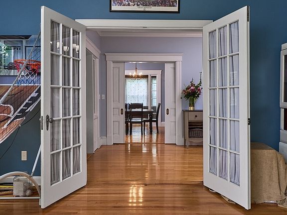 The newly paved wide street and Gracious Victorian Architecture harken back to days gone by, until you step inside to the Grand Foyer and Staircase! 3 floors of living include: Formal Dining w/Pocket Door, Formal Living Room w/ a bay of windows, a custom wainscoted and fireplaced Library, Hardwoods throughout lead to the Chef's Kitchen with Granite Countertops, custom hickory style cabinets & Pendant lit Island w/Energy Star Appliances.The floor plan opens into Family rm. with original porch paneling, french doors and a wall of windows!The sliders open out to a trex type deck that is end to end on the whole house with Cable fencing! The 2nd level contains 6 bedrooms, one a walk through from the Primary w/ Full En Suite used as a huge closet! The Hall bath with Laundry/Washer/Dryer and Vintage Linen Press Closet complete. The 3rd Level has 3 more freshly painted bedrooms and a full bath. The Carriage House has 2 garage spaces& a kennel! The back yard is expansive w/ a fenced garden area