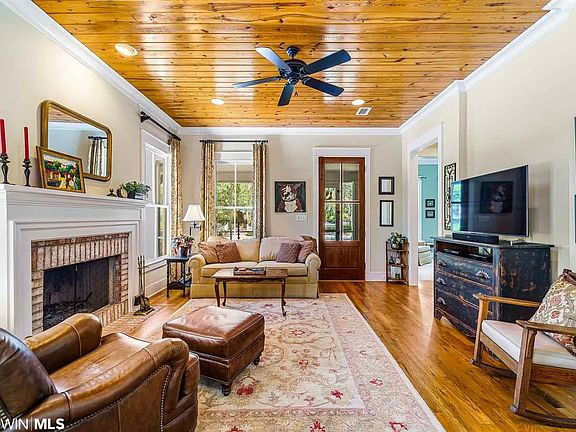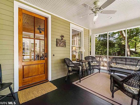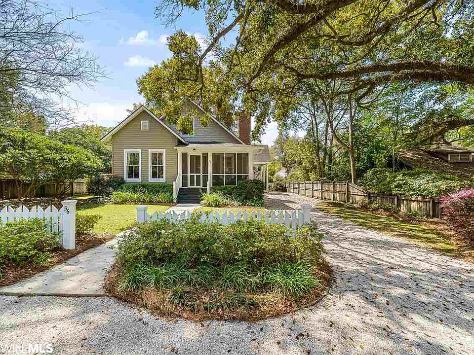 Location, location, location! This charming Fairhope cottage sits 2 blocks from the Bay and from downtown. Walk to the Bay to enjoy sunsets and into town for dining. With its white picket fence and screened front porch, this hardiboard 1.5 story house makes you want to stay a while and relax! This 4 bedroom, 2.5 bathroom house has 2030 sq ft and a single carport as well as matching shed. Upon entering, the oak floors, wood ceiling, and wood burning fireplace with gas starter instantly create an inviting atmosphere. Kitchen features granite counters, pantry, and lots of cabinets. Dining area has built-in cabinets with lots of light. Master suite offers a large walk-in closet, doubles sinks, shower, clawfoot bathtub, 2 linen closets and separate toilet area. Downstairs guest bedroom is currently being used as a den and an office. Upstairs has 2 additional bedrooms with a Jack and Jill bathroom. Laundry room is situated behind the kitchen and near the back door. 10' ceilings on main level. Separating the living room from the dining room is a Japanese Torii gate door casing symbolically marking the transition from the mundane to the sacred. Half bath on main level. Dual HVAC units for energy savings! Extra parking pad on the front of the property. Furniture negotiable.