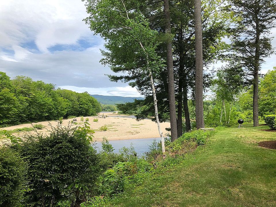 Mountain River Avenue comprises 24 secluded condos overlooking the Pemigewasset River in Thornton and nestled in 24.1 private acres in the Pemigewasset River Valley of New Hampshire's White Mountains. Unit #10 has 3 sliders opening onto decks with spectacular views of the river and river valley. 2 floors - the upper comprises a unique, private suite with a bedroom, remodeled bath and lounge. The lower floor has 3 bedrooms (master with remodeled en suite), remodeled kitchen and dining room with solid bamboo floors, lounge, remodeled bathroom and laundry. The lounge and master bedroom have cathedral ceilings. The unit comes with one of only 14 garages available in the Association. The fireplace passed its Level II inspection in April 2022. The unit is heated by forced hot air (Toyotomi) with electric baseboard as backup.