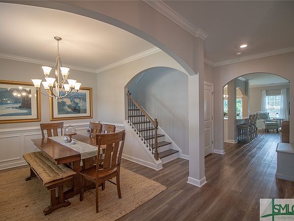 Located on a cul-de-sac overlooking a peaceful, secluded pond, this Victor model home sits in the East Buckhead community, and boasts open concept living with an expansive great room, covered porch with areas for grilling, fishing or watching the sunsets. The white kitchen has a large island, quartz counters, subway backsplash & stainless steel appliances. The Primary bedroom is on the Main Floor. The primary bath has double sinks & quartz counters. The main floor includes a dining room, laundry room and a half bath. Upstairs, there are four spacious bedrooms, two additional bathrooms, and a bonus room. LVP throughout the main floor, upstairs hallway and all bathrooms. The stairs are made of wood with the upgraded metal spirals. Upgraded pad and carpet in each bedroom. The driveway has an extended parking pad to accommodate 6+ vehicles! Come see this beautiful home surrounded by nature trails, community pools, playground, dog park, and athletic fields. It won’t last long!