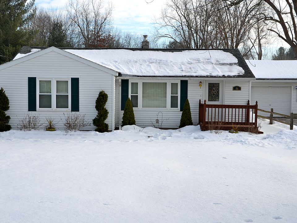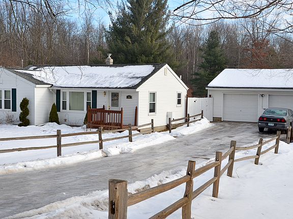 Country living with city amenities - this 3 bedroom, 1 bath ranch features hardwood floors, an updated bathroom and an expansive heated garage! The backyard boasts a new stamped concrete patio and plenty of space for all of your backyard activities. All of the big ticket items are taken care of here - new roof in October 2019, new furnace in 2018, new refrigerator 2019, new hot water heater and dishwasher in 2015! Just move right in!
