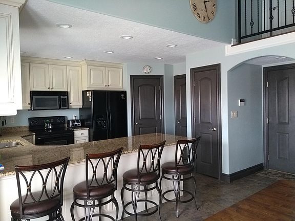 Custom rambler on a large lot in the Mountain Shadows subdivision. 6 bedrooms and 3 bathrooms. Recently updated paint and flooring. Includes maple cabinets, two gas fireplaces, custom trim work, high efficiency solar power, jetted tub, walk in shower, water softener and security system. A fully landscaped and fenced yard offers an in-ground trampoline, horse shoe pits, and fruit trees. The bonus room upstairs, and fully finished daylight basement provide amble family gathering areas.