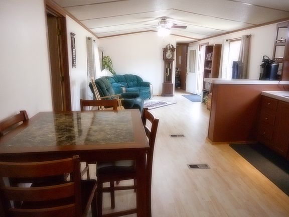 Country setting just minutes to city conveniences. This single wide offers new kitchen and living room flooring, new furnace, a 12x12 addition and detached 2 car garage with power on a private lot with seasonal views of No Name Pond.