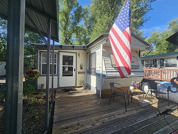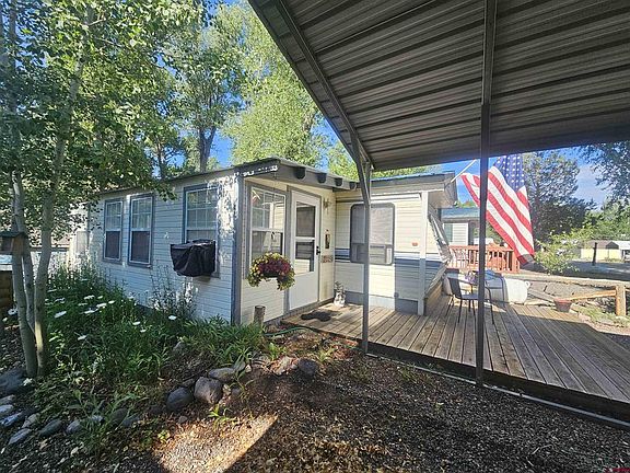 56 Okie Lane is bright and welcoming. This 1995 Dutchman trailer has a great, 3 season Colorado Room, it's fully furnished and ready to go. The shed features a washer & Dryer as well as a full bathroom for your convenience. Water, sewer and trash is included with your HOA dues. Located almost directly across from the Rio Grande River access point for the community, you are just steps away from Gold Medal Waters. Please see the drone video and video tours for more information. Unlike many similar clubs, in the Aqua Ramon Fun Club, you own the land, not just the trailer. The lot has community water, sewer & electricity. Internet is available, but not currently hooked up at this address. Comfortable and convenient, you are allowed to use this property for up to 9 months per year according to the community covenants which can be found in the virtual tours section. Walk across the road to the Rio Grande River. You can fish, kayak, tube, or just sit and enjoy the water flowing by. A community access point is just a few steps from the property's front door, and you are allowed to enjoy the river along the entire length of the development, not just a small access point like in many communities offer. Your $400 per year HOA dues include water, sewer, trash, open space maintenance, and use of the clubhouse. A vibrant community of fun, outgoing people use the clubhouse for games, cards, puzzles, community potlucks, birthday parties, and more. A drone video of the community as well as a blog post/article with the covenants and BAC can be found in the virtual tours section as well. Two adjacent properties 21 Oklatex and 64 Okie Lane are available by the same sellers. All three properties tothether have enough sleeping room for approximately 15 people and have a total of 9 parking spots together - unheard of for this neighborhood. All three homes together are priced at $450,000. Please see the blog post/article in the branded virtual tours section for all details on the other homes.