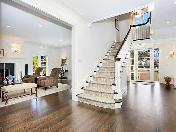 Visit this very special five bedroom, five-and-a-half bath home, set in a quiet in town Greenwich neighborhood. This classic Georgian Colonial-styled home has been expanded and totally rebuilt in 2018 with the utmost of care and attention to detail for the discriminating buyer seeking a clean and contemporary layout. Enter the grand front-to-back foyer with sweeping staircase and immediately appreciate the classical, beautifully-detailed formal rooms with the warmth and graciousness of the fireplace, many floor-to-ceiling windows, and open floor plan with easy access to terraces and private back lawn. Enjoy cooking in a chef’s kitchen with top-of-the-line appliances, custom cabinetry, stone counters, and a wonderful breakfast area overlooking the private gardens. Work in the private library with custom woodwork, built-ins and fireplace, or open the pocket doors to enjoy the activity in the adjacent areas. Relax in the serene master suite with spa bath, fireplace, and custom fitted dressing room. Or watch the moon glisten in the sky from the private sitting room. Three additional en-suite bedrooms, laundry, and an office complete the upstairs. Appreciate the flexibility of a walk out lower level with media room, game room, wine cellar, guest suite, second laundry and storage. Smart home technology advances green living in a home completely encased in structural top quality insulation. Integrated sound, lighting and flat screens throughout the home enhance the ambiance. New roof, windows, interior and exterior doors, wiring, plumbing, systems and natural gas generator assure maintenance-free living. This home embodies exceptional design, custom materials and the highest standards of modern construction throughout. The perfect home for gracious entertaining and family living.