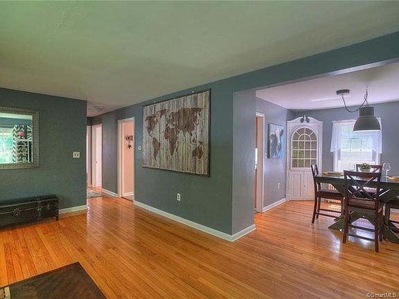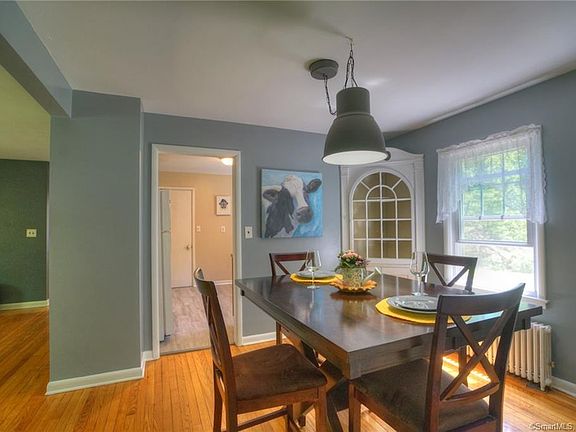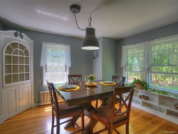 Four bedroom Cape has 1,422 sf and beautiful hardwood floors throughout. The spacious living room opens up to the dining room with built-in hutch and shelving. A door leading to the backyard is located in the kitchen. There are two bedrooms located on each floor and a den with built-in shelving located on the upper floor as well. Both bedrooms on the upper floor have cathedral ceilings. The home also has a full basement with walk-out, attached garage, patio, and garden area. Conveniently located just minutes away from downtown Norwich and Mohegan Park.