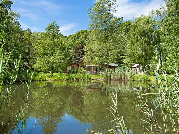 Secluded and serene, this quaint A-frame cottage sits at the end of a private lane on 4.53 acres and overlooks a small pond. A screened porch, a deck and glass sunroom all take advantage of this lovely, natural setting, ideal for a weekend retreat or a permanent residence. There is a wood burning stone fireplace and the loft has an open office area and a charming bedroom. In 2011, a large entry hall was added (with lots of storage), the kitchen was updated and solar panels installed for hot water. The cottage is a short distance from Stissing Lake, Stissing Mountain, and the Thompson Pond Nature Preserve, a National Natural Landmark, with miles of hiking trails, swimming, boating, and fishing and just a few minutes' drive to the Pine Plains village center and The Stissing Center, the new performing arts venue. With easy access to the Appalachian Trail and South Taconic Trail, and near Bard, Vassar, and many other performance venues, you will enjoy all that the Hudson Valley has to offer.