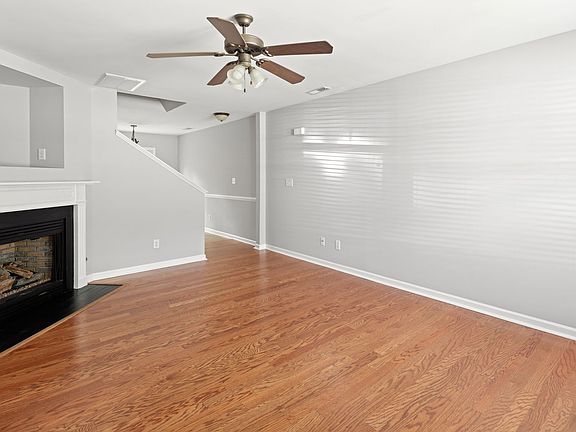 Nice townhouse in a great central Fletcher location, with an attached garage, gas fireplace, and fresh paint throughout! The front porch opens into the living room, featuring attractive wood floors, a ceiling fan, and the gas fireplace. At the rear of the home, the kitchen and adjacent dining area have vinyl flooring and doors that open onto the back patio with privacy fencing. The kitchen has plentiful cabinetry and stainless appliances including the electric range, built-in microwave, dishwasher, and refrigerator. The attached one-car garage and powder room are located off of the kitchen. Three bedrooms and both full bathrooms are on the upper level. Bedrooms are are carpeted with ceiling fans. The primary suite offers two closets, and its en suite bathroom has a double sink vanity, a bathtub/shower, and great storage. The two remaining bedrooms share the hall bathroom, which also has a bathtub/shower. Laundry is off the upstairs hall, and the newer washer and dryer are included! Ceiling fans throughout! Central heat (natural gas furnace) and central air conditioning (electric). Tenant responsible for all utilities, including gas, electric, and water. The Townes at Bagwell Mill includes sidewalks and landscape maintenance. HOA rules dictate that this property is for single family residential use only. No cosigners. No smoking. No pets.