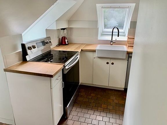 NO BROKER FEE -. Spacious, light filled and partially furnished (or unfurnished) 1-bed apartment on the 3rd and top floor of a beautiful two family home. Apartment has its own small private rooftop deck overlooking the beautiful garden and woodlands next door. Has an open plan living/dining/kitchen area with bathroom, bedroom and large closet off hallway. Kitchen features new electric stove, microwave, new dishwasher, fridge/freezer and newly fitted washer and dryer. Rent includes water and cable. Available now. First and security deposit only to move in and no listing agent fee. Easy to show as vacant. Very convenient and easy access to I-90 Mass Pike, Watertown Square with easy transport into Harvard Square,Cambridge and Boston. References and good credit required.