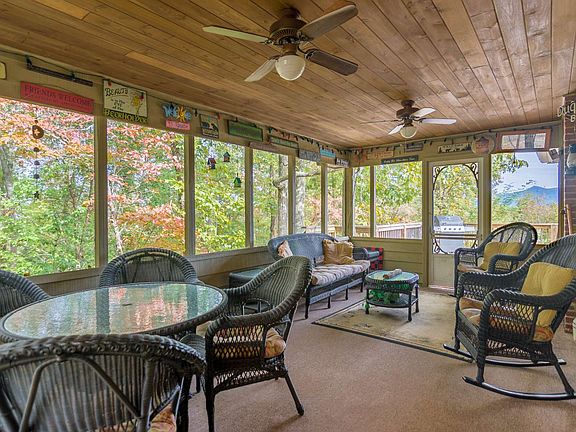 Hello Mountains! Long-range mountain view cabin with 4 Bed / 4 Baths on gentle, level lot. Does not get any better than this! End of Road privacy. Open floor plan & walls of windows to enjoy the view. Wood burning fireplace, hardwood floors & Master suite on main floor includes bath with jetted tub, shower & large closet. Spacious, gourmet kitchen with Vaulted ceiling & beams, Breakfast bar, Wet bar, gas stove & stainless steel appliances. Gather family & friends on the oversized deck or relax on the screened-in Sun Room. Fully finished basement includes Bunk Room, Bath, Rec Room with TV & Game area, lots of storage & Wood burning stove. Detached two car garage, Outbuilding/workshop & single basement garage. Outdoor firepit & covered BBQ area on nicely wooded lot. On established rental program & move in ready. Additional property available for purchase adjacent to this property.
