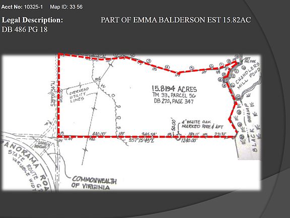 Beautiful 15+ acre plot to build your dream home/ getaway cottage (panorama road) Beautiful 15+ acre plot to build your dream home/ getaway cottage Property near Montross on Panorama Rd. 15.82 ac. Partly open and rest wooded. Beautiful Area, Peaceful and Quiet Community. Great Building sites for your dream house. Abutting Chandler's Mill Pond with several marinas in a 10-25 minute drive. Property has lovely pond views, some wooded area and lovely open building sites. Live on it yourself or it would make a great lovely campsite/ tiny house community
