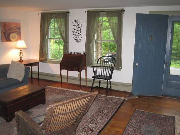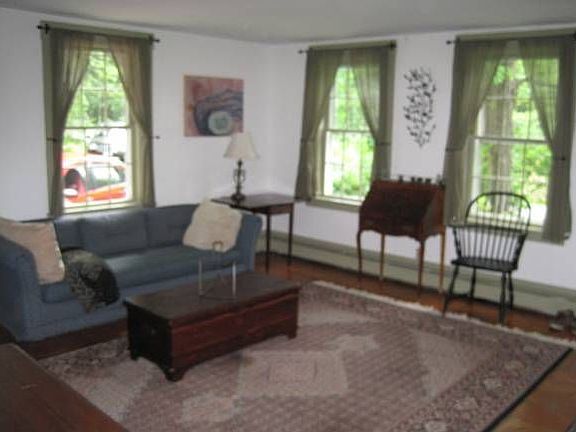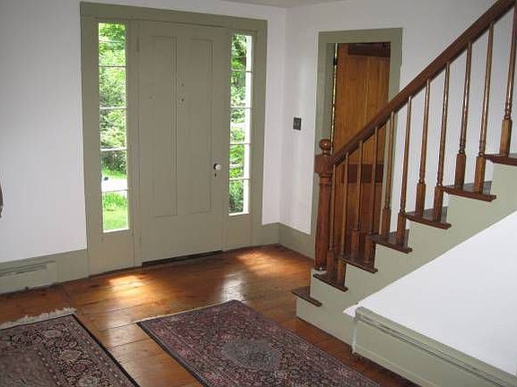 Handsome Greek Revival Cape, lovely original features throughout the home, beautifully combined with a renovated Open Concept KIT, DR & Family Room w/a woodstove hookup. L-shaped KIT w/abundant cabinetry, above and below storage & pantry area. Formal LR w/elegant open stairway. First floor BDR option if desired. Library w/built-in bookcases. MBDR w/twin skylights, vaulted ceiling, Jacuzzi bath & spacious dressing room. Large 2nd floor laundry. Great studio space or 4th upstairs BDR w/twin skylights & vaulted ceiling. Lovely wide pine floors throughout. For added privacy, this unique property owns land on both sides of the road, with frontage on Partridge Brook.