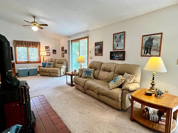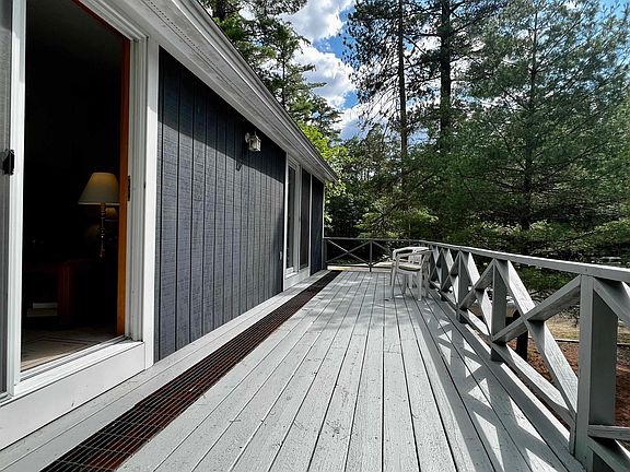 CONVENIENCE IS KEY with this E. Conway Rd location. ‘Off the beaten path’, but only a few miles drive to all the exciting year-round amenities of both North Conway and Fryeburg Maine. Furnished, well cared for contemporary chalet with attached 2 car garage and easy access to storage above. Located on 1.2 acres of land with a circular driveway, the land is level and left natural for easy care. Beautiful expansive deck off the living and dining room sliders, makes for extra space to enjoy warm days and cooler nights. A centrally located hearth with woodstove is set for you to enjoy instant heat and ambiance. There is also a smaller wood stove on the first floor, if wood is your thing. The spacious eat-in kitchen is open to the dining area and has plenty of cabinets and counter space. The primary bedroom is located off the kitchen and has its own bathroom. Its closet could be expanded into the unfinished attic which provides a set of back stairs to the exterior and the heated garage. Whether your plan is vacation or primary living, there are three bedrooms plus a den, all with good-sized closets. There are also 3 bathrooms, including 1 tub and two showers, so no one stands in line long if you have a full house. The laundry room has an exterior door under the deck, making it easy to leave the dirty clothes right when you come home from all the fun you will have living or vacationing in the Mt Washington Valley. Owned by the same owners for 35 years, it’s now your turn to enjoy.