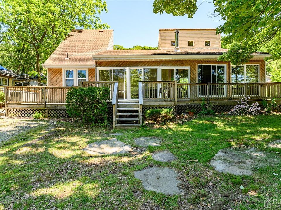 Lake View living has never looked better! This lovely 3 BR 2 Bath Contemporary Home is ideal for Nature Lovers, Fishing Enthusiasts & Avid Boaters Alike, situated on a premium wooded lot w/direct access to serene Greenwood Lake! A big wraparound deck & impressive Sunroom w/triple glass sliders welcome you in, the perfect spots to relax & enjoy your morning coffee while enjoying peaceful water views! Step in to find a spacious&bright 2 story LR, complete w/vaulted ceiling & soaring skylights that truly open up the space! Stunning stone front fireplace to warm those chilly nights, too! Sizable FDR feat. trendy exposed beams & sliders to the yard, sure to impress any guest! EIK boasts newer floors, rec lights & delightful breakfast bar! All BRs are generous in size, inc the MBR, offering it's own WIC, ensuite bath & deck access! Great Loft Area, too! Outdoor entertaining is made easy w/a plush Yard and Patio! A MUST SEE!!!