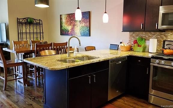 56 Patton Ave #404 is a permitted vacation rental that is located above the S & W Market, which is Asheville's original Food Hall, and will be the future home (projected to open spring 2021) to Highland Brewing, Bun Intended, The Times Bar, Buxton Chicken Palace, and more. The property features a 400 SF patio with mountain and city views. Building is located across from Pritchard Park in the heart of downtown Asheville. Inexpensive HOA fees, elevator (requires access code), high ceilings, granite counter tops, stainless steel appliances, and wood floors. Perfect for a downtown residence or short term rental. See floor plan attached.