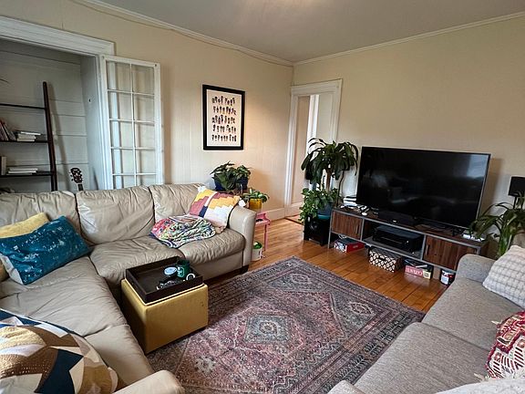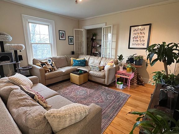 Unbelivable location This sun splashed spacious second floor apartment has it all. Two floors of living. Can be used as 2 bedrooms and a dining room or 3 bedrooms. Huge walk-in closet with small office space. 3 season porch/gym. Bonus room on the second floor. Hardwood floors throughout. Fully equipped kitchen. Laundry in the basement. Plenty of storage. Parking for 2 cars. Good size yard for summer BBQs. Conveniently located just minutes from Newton Centre T stop, Restaurants, Crystal Lake and easy access to rt9. Available 5/1. Absolutely no pets.