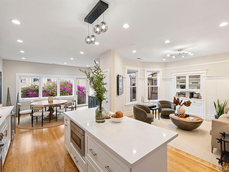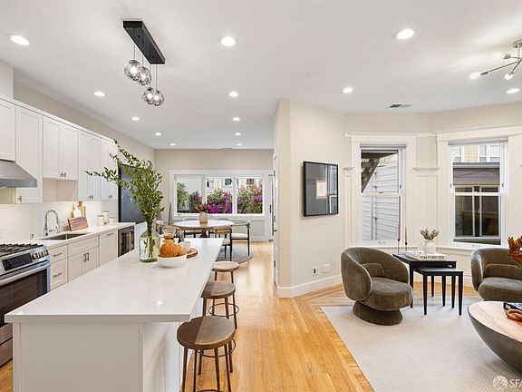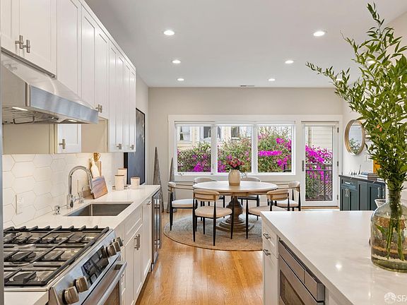 Welcome to 56 Pearl St - a stunning top-floor 3-bedroom, 2-bath condo tucked away on a rare and peaceful cobblestone street in the vibrant Mission Dolores. Originally built in 1909 and tastefully renovated and expanded in 2021, this home in a two-unit Edwardian blends historic charm with modern design. A light-filled open floor plan with elegant finishes creates the ideal balance of character and comfort. Modern amenities include in-unit laundry, generous storage, additional shared laundry in the garage, and parking. Enjoy exceptional outdoor living with a shared backyard featuring a custom mural by a local artist, and a sun-drenched rooftop deck with breathtaking panoramic city views. This will be your favorite place to relax or entertain. Situated at the crossroads of Mission Dolores, Hayes Valley, and the Mission, this vibrant and diverse neighborhood is filled with top restaurants and eclectic shops. You're literally steps away from the Market Street, Valencia Street corridor, Whole Foods, and Safeway. This prime location also offers a commuter's dream, with BART plus multiple MUNI lines all within walking distance. Experience the best of San Francisco living in this unique and vibrant neighborhood an extraordinary opportunity not to be missed.