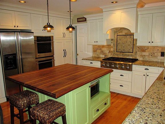 Sunny, spacious, super location. Updated cook's dream kitchen - huge island, 6-burner gas cook-top, double ovens, top of the line cabinetry, crown molding, exterior vented range hood, hardwood floors. Master bedroom with cathedral ceiling. First floor has full bath and office with closet for optional 5th bedroom. Who needs to go anywhere? This home is the summer place to be. Gorgeous screen room with mahogany flooring, vaulted ceiling, skylight, paddle fan and beautiful in-ground pool (liner 2015).