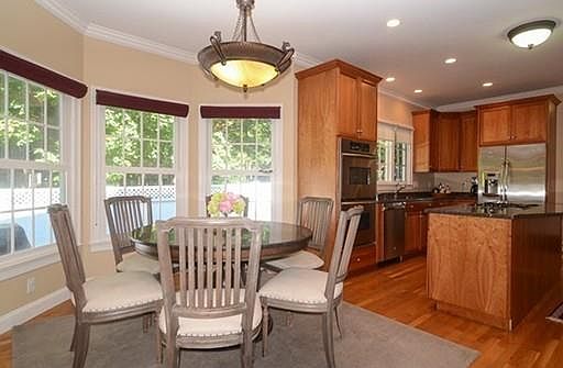Fantastic young Colonial in the Bates School neighborhood. The open floor plan dining/living room allow for easy yet elegant entertaining and the open kitchen/family room combine to create the heart of the home. The kitchen is eat-in with stainless appliances, generous cabinet space, a pantry and an island. The warm, inviting family room offers a fireplace and polished hardwoods. There are tall ceilings and beautiful details throughout. The master suite has a luxurious bath and walk-in closet. The lower level has high quality finishes and provides extra room to play and relax. The two car garage has extensive custom cabinetry for ample storage. Step outside to enjoy professionally landscaped grounds and a private backyard.