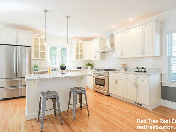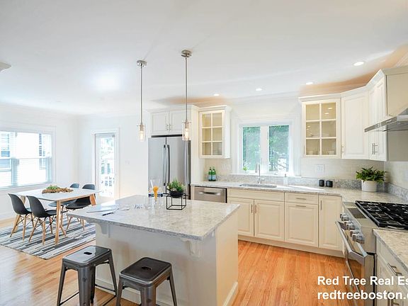 Completely remodeled single family detached house with three floors of living space for rent. Open plan, with kitchen having center island, gourmet range, microwave drawer, white cabinets with quartz counter tops, flowing into dining and gathering space with gas fireplace. Also has side area overlooking outside space, which can be breakfast area, office or family space. The house has an entry mud room, half bath on ground floor. There are three bedrooms, two on the 2nd floor and 1 on lower level. All bedrooms have en suite bathrooms. Bedrooms have ample storage space and custom closets. One bedroom leads to a balcony which is another perfect space for enjoying the outdoors. This space has a very nice view. The house is completely insulated with 'Icynene', which makes it very energy efficient, all new electrical, has central a/c, nest thermostats, Ring doorbell system. There is a driveway and parking for 2 cars, along with a deck and back space.