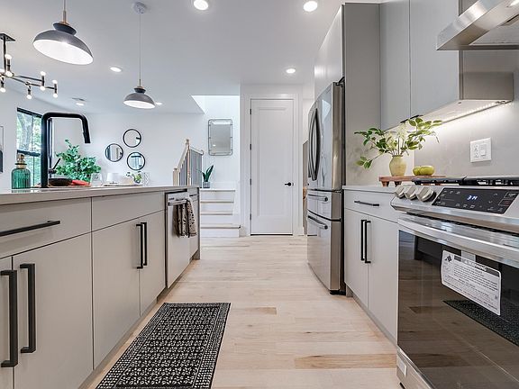 Modern design and urban escape combine to bring this newly renovated home to Jersey City Heights. Presented with carefully curated finishes, private outdoor space and quality craftsmanship, this property is located just off Pershing Field Park and Reservoir, and nestled on a tree-lined street between Palisade and Central Avenue. Gorgeous green siding, beautiful black trim plus soffits, and classic front porch lead the way to the impeccably designed interior. Featuring high ceilings and white oak floors, the two bedrooms, two bath floorplan offers style and spaciousness. Kitchen showcases custom gray cabinetry with under lighting, matching quartz counters, matte black fixtures, and stainless appliances. Sliding glass doors lead you to your own private deck and backyard, and also feature access to the quintessential front porch, perfect for watching the world go by. Black half-wall wainscotting offers timeless appeal in the primary ensuite, while bathrooms boast floor to ceiling tile, natural wood vanities and extras like a shower nook and bronze or black fixtures. Nestled in a sweet spot of Jersey City Heights, owners enjoy nearby Pershing Field Park with swimming pool, tennis courts, sports facilities and more. Also within walking distance is bustling Central Avenue with shops, cafes and restaurants, and the 2nd Street stairs with direct access to Hoboken and Lightrail Station. The Heights is known for its tight-knit community, excellent parks, great schools and easy NYC access.
